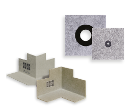 Pezzi speciali preformati realizzati con membrana impermeabile e barriera al vapore rivestita su entrambe le facce da poliestere non-tessuto per l’impermeabilizzazione di: angoli interni, angoli esterni, passaggi impiantistica, e raccordo con sistemi di scarico.